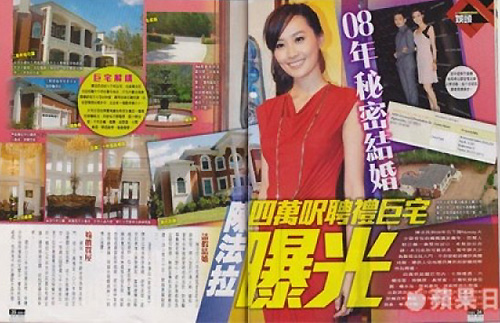 The rumors that Fala Chen (陳法拉) secretly married Neway heir, Sit Sai Hang (薛世恒), in 2008 have circulated for several years. However, the couple continued to retain their silence over their marital status, which they did not actively deny. A reliable source revealed that in order to marry Fala in 2008, Sit Sai Hang held the wedding in the United States and gave $10 million HKD in cash and a 6,800 square feet mansion as a gift to Fala’s family!