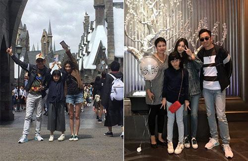 It seem like they’re at the universal studios feel sorry for the daughter that she doesn’t get to see her daddy much she looks pretty cute. Glad they’re spending a family time together.