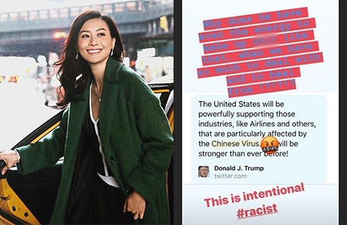 Using the term “Chinese Virus” to describe COVID-19, the president’s tweet had sparked widespread anger among local and international communities, with many referring the tweet as intentionally racist. Many online communities and national entities have publicly denounced the tweet. Celebrities have also followed suit, including former TVB actress Fala Chen (陳法拉), who is a naturalized American citizen. She shared the tweet on her Instagram story and said, “Why does he have even the energy to make up s*** like that when we have so much to deal with and heal from?” She then added, “This is intentional,” with the hashtag “racist.”