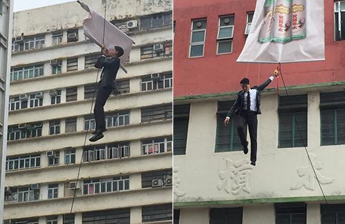 Last month, Vincent was spotted shooting an action scene in Tai Kok Tsui. The scene was about him hanging down from a banner six stories off the ground, and then jumping off from a truck.