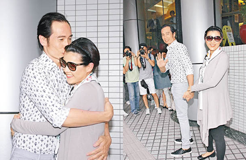 On the afternoon of April 29, the couple greeted approximately 30 reporters at the front of the HKSH to deliver their happy news. At the time, Moses had just returned from a long filming schedule for his new TVB drama, My Love from the Planet Meow <來自喵喵星的妳>, in Tai Po. The reporters requested Moses to kiss Aimee three times on the forehead, which he gladly did.