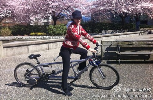 Although she was in Vancouver, Linda watched her new TVB drama, Daddy Good Deeds <當旺爸爸> at home with her family, who laughed and cried over the plot. In her spare time, Linda bicycled outdoors to enjoy the spring weather and cherry blossoms at a local park. Linda appeared to be thoroughly enjoying her time in Vancouver by spending it with the most important people in her life.