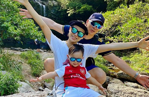 After tying the knot with businessman Philip Lee (李乘德) in 2015, Myolie Wu (胡杏兒) welcomed two sons Brendan (born 2017) and Ryan (born 2019). Taking a temporary step back from her acting career, Myolie has been spending the past few years managing her personal businesses and taking care of her two sons. A few days ago, the couple went hiking in Tai Po’s Bride’s Pool Waterfall—they brought along their two-year-old son Brendan, as well as Philip’s parents.