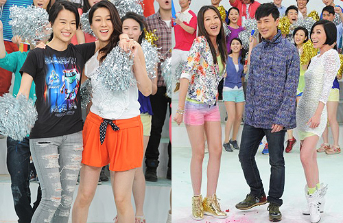 Raymond showed off his “chok” looks as Charmaine and Sharon Chan (陳敏之) festively circled around him. When Krystal Tin (田蕊妮) appeared, Wong Cho Lam (王祖藍) and Louis Yuen (阮兆祥) suddenly popped out to join her in a hilarious warm-up dance. Cho Lam wriggled around with half of his jacket draped on, while Krystal was also in high spirits. Standing next to them was Kenneth, who is known as being shy and thus initially appeared awkward in the situation. However, he later joined the masses and dance along.