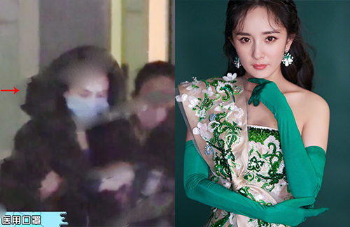Several hours later, Yang Mi left the salon through the same exit. One assistant stood in front of her, and another stood behind to make sure they weren’t being followed. Yang Mi was seen with medical tape on the T-zone of her face, and her face mask was changed to a white, surgical one. It appears that Yang Mi had completed some treatments on her face, and like what rumors are saying, maybe she has just undergone cosmetic surgery.