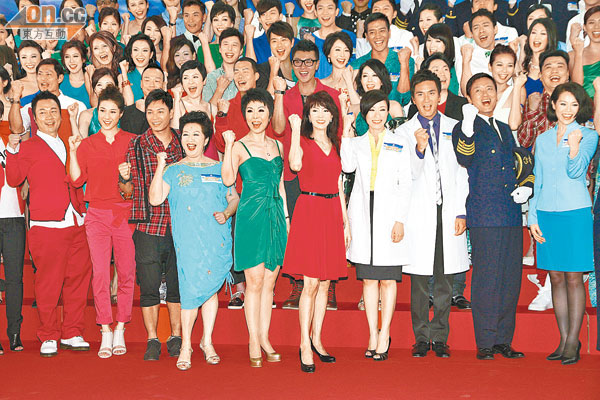 A number of front-line artists such as Moses Chan, Bernice Liu, Liza Wang (汪明荃), Raymond Lam (林峯) and Charmaine Sheh were unable to attend the TVB sales presentation. TVB executive, Virginia Lok (樂易玲), noted that Moses was currently filming a special in Brazil. Raymond was at the Shanghai Film Festival. Liza attended the National People’s Congress. Bernice was filming a special in Russia. When asked whether Charmaine Sheh was invited to the sales presentation, Ms. Lok said: “Everyone received invitations but some artists could not attend due to scheduling conflicts!” When reporters noted that the leading actors and actresses did not attend to support the event, Ms. Lok said anxiously, “Roger Kwok (郭晉安) and Wayne Lai (黎耀祥) are not leading actors?” During the group photo, the artists standing in the first row were Wayne Lai, Maggie Cheung (張可頤), Michael Miu (苗僑偉), Carol Cheng (鄭裕玲) and other senior actors. The other leading artists included Steven Ma (馬浚偉), Kevin Cheng, Linda Chung (鍾嘉欣), Tavia Yeung (楊怡) Kenneth Ma (馬國明), Ron Ng (吳卓羲), Kate Tsui (徐子珊), Fala Chen (陳法拉) and others.