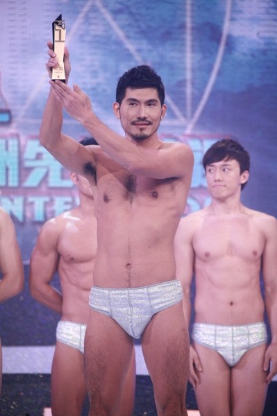 The biggest news of the night was the withdrawal of a contestant. Contestant #7 Ivan Bi (畢萬春) had threatened to pull out from the final, but it was #2 Jason Dong (董鵬) who withdrew from the contest the evening before the show. Jason complained on his Weibo that the contestants were subjected to ATV’s inhumane treatment. Apparently, when ATV staged a live TV show protesting against additional TV licenses to be granted to new stations, the contestants were asked to play security guards at the location. Also, to promote the event, the contestants were asked to parade on a busy street in briefs only. Jason said that throughout the events, he felt that he was treated worse than an animal.