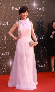 Veteran actress Angie Chiu lit up the red carpet with her pink lady look. With her hair tied down and a gown that features layers of pink chiffon, the 61-year-old did not look a year past 40.