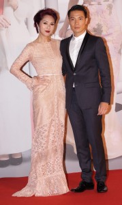 Like Miriam, actress Ada Choi opted for a safer look. Her bejeweled gown was simple and modest, but it added an element of surprise with the plunging neckline. Ada went to support her husband Max Zhang (張晉), Best Supporting Actor nominee for SPL 2: A Time for Consequences <殺破狼II> and Ip Man 3 <葉問3>.