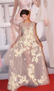 Best Actress winner Jessie Li challenged a stranger red carpet look with her abstractly colored dress and high heel sandals, tied with furry balls. The look was by no means the best look of the night, but the 23-year-old Chinese actress livened up the red carpet with her optimism and quirky outfit.