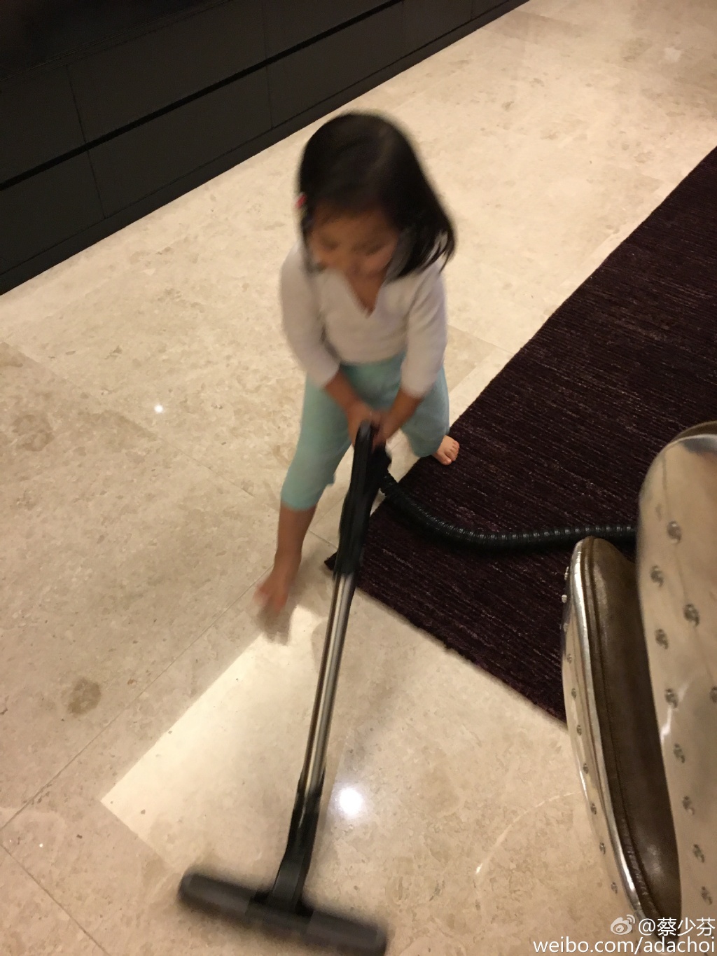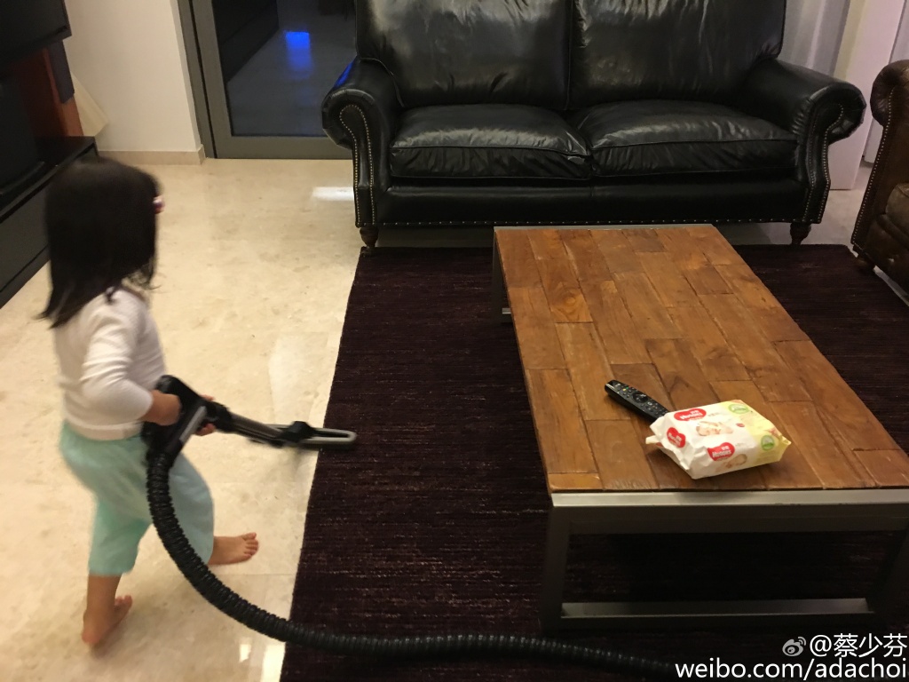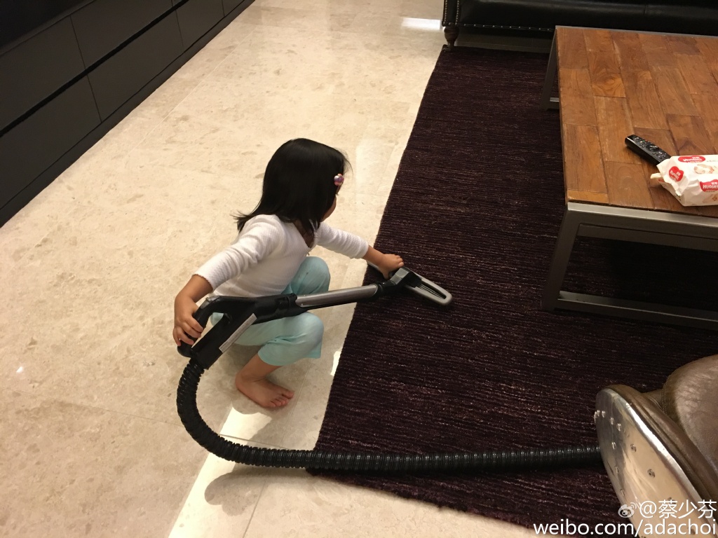 Mother of two, Ada Choi (蔡少芬), often share bits and pieces of her family life with fans on social media. In her latest update, The Legend of Zhen Huan <後宮·甄嬛傳)> star uploaded a few pictures of her youngest daughter “Little Baozi” cleaning the floor of the family room with a vacuum. Ada wrote in her post, “It’s time for Little Baozi to grow!”