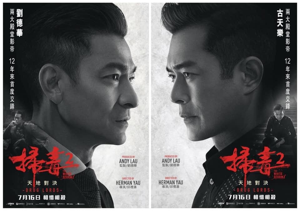 Produced by the same studio and production crew behind 2013’s blockbuster hit The White Storm <掃毒>, its spin-off film The White Storm 2 — Drug Lords <掃毒2天地對決> sees the return of Louis Koo (古天樂) and the addition of Andy Lau (劉德華), who also produces the film. Drug Lords is Louis and Andy’s first collaboration since 2007’s Protégé <門徒>.