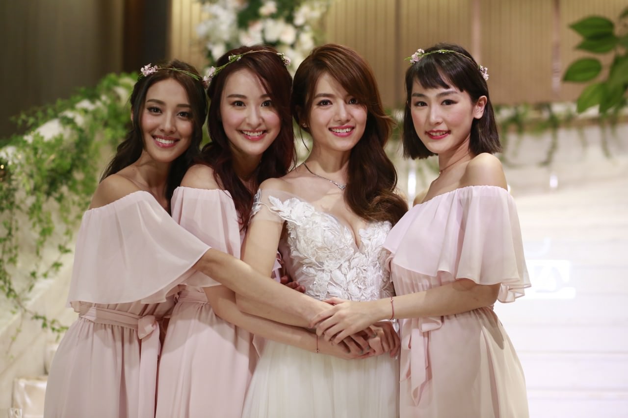 That evening, Epaphras and Anjaylia held their wedding banquet at the InterContinental Hotel. Many close friends were in attendance; Anjaylia’s Blue Veins costar Grace Chan (陳凱琳), Never Dance Alone <女人俱樂部> costar Jeannie Chan (陳瀅), and Evelyn Choi (蔡穎恩) were her bridesmaids.