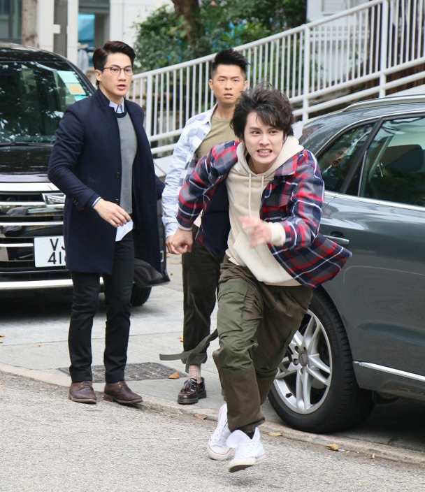 Arnold Kwok (郭子豪), Matthew Ho (何廣沛), and Milkson Fong (方紹聰) were filming for their new drama Brain-Eating Zombie <食腦喪B> in Causeway Bay recently. Arnold revealed that he had stayed at a hotel for some time, so he could get to TVB Studio for work more conveniently.