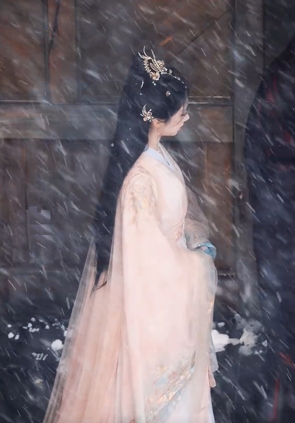 The casting of Wang Yinglu also generated doubt, with many unsure whether she had the charm and acting skills to pull off the complex role. Leaked photos showed Wang Yinglu in a peach-colored dress and simple gold crown hair adornment. She emitted femininity and looked ethereal amid the soft, romantic snow. Arthur’s hand was seen covering Wang Yinglu’s hand over a bamboo umbrella. The beautiful cinematography and scenery promise an aching romance that is sure to excite fans.