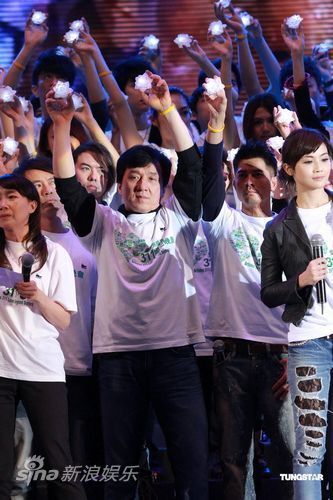 Jackie Chan opened the program by leading dozens of artists and audience in a moment of silence for the casualties in Japan. All the artists linked arms as they performed the theme song “Succumb Not to Sorrow,” specially composed in memory of all the victims of the earthquake and tsunami in Japan. There were both Japanese and Mandarin lyrics for this song to praise the tenacity of the Japanese people during such tough times and hardship. Some of the Hong Kong artists who performed at the charity gala included Alan Tam, Kenny Chung, Joey Yung, Charlene Choi, G.E.M., and Hacken Lee just to name a few artists.