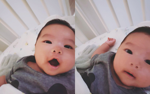 Previously, Eliza only showed Jacob’s sleeping face, so it wasn’t clear what Jacob really looks like. But good friend Bernice Liu (廖碧兒) satisfied fans curiosities and shared a photo of the two-month-old boy during her recent visit to Eliza’s home.