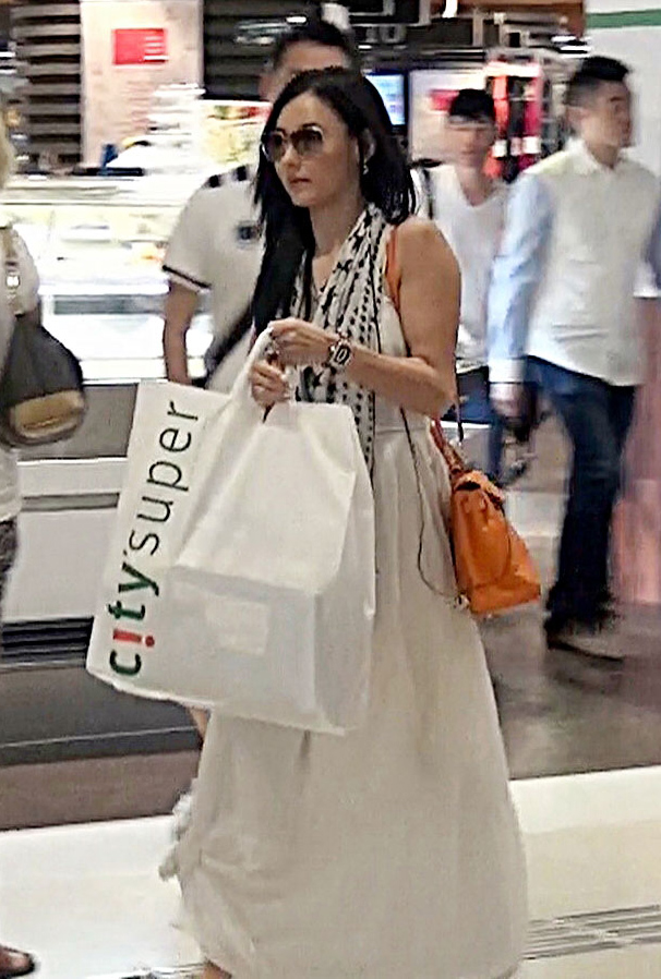 Shopping for groceries at the IFC mall’s City Super in Hong Kong, Cecilia wore a loose white dress with a long scarf draped strategically over her belly. Her backside showed a thickened waist and indicated that she has gone up at least one clothing size.
