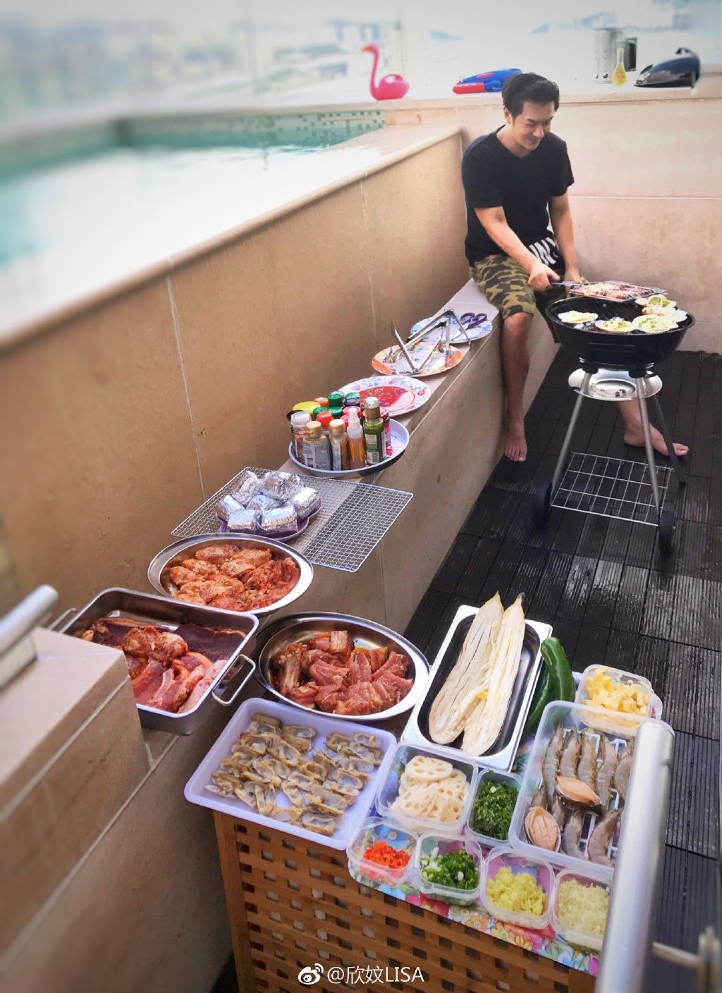 A swimming pool on a tall building I don’t know about that it might look scary if you looked down. Maybe he’s trying to look older than his age it doesn’t looks like he’s trying to looks younger to me. Wow. Look at Lisa legs? Very long and so skinny lucky woman after give birth and still can stay so skinny without gain any weight. What a beautiful childrens they have.