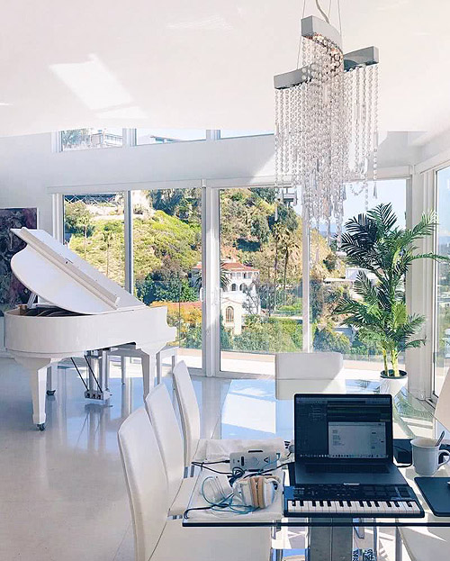 While G.E.M.’s intention may be to update fans on her current status, her photos revealed a glimpse of her stunning Los Angeles home. With soaring floor-to-ceiling windows, there were wraparound views for miles of the surrounding suburban landscape. The view definitely inspires G.E.M. as she sits at the dining table to work on her laptop. Furnished in all white with a grand piano, the minimalist design featured an open layout.