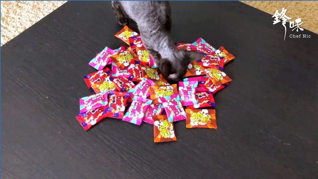 Nicholas’ home is furnished in a simplistic manner and the main color scheme include warm, inviting colors such as creamy white, light gray, and green. The living room has many cat toys, including a cat playground and cat bed. Miso was seen sniffing a pile of Chef Nic cookies.