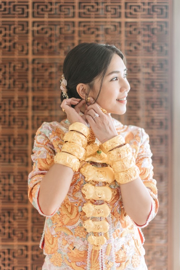 The day isn’t complete without taking picture and Samantha was decked out in gold bangles, a golden pig necklaces and a pear-shaped wedding ring. Stephen and Samantha looked dashing in their traditional Chinese wedding attire as they celebrated their big day!