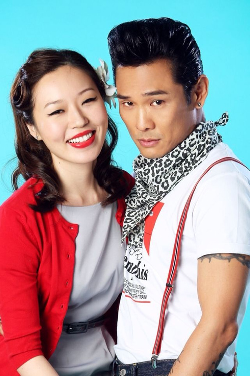 The couple held a 22-table wedding banquet in the evening, which had a 1950s wedding theme. The venue was decorated with red flowers and red balloons. The wedding cake was red, black and white, with a cake topper featuring a caricature of the couple in a red convertible.