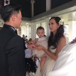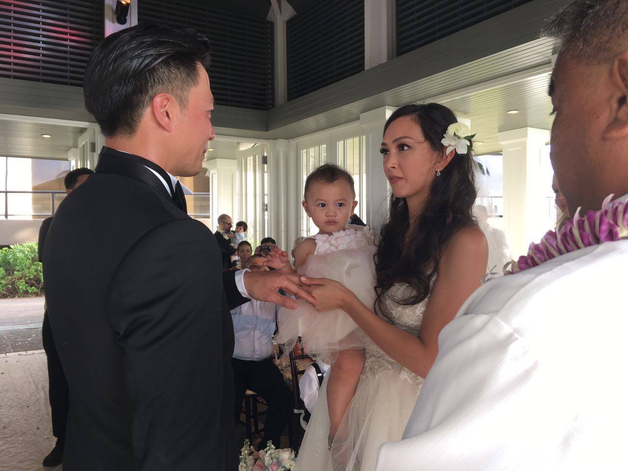 After a two-year engagement, Andy On (安志杰) and Jessica C. finally tied the knot in a wedding ceremony held at Turtle Bay Resort.in Hawaii on October 15. Accompanied by their one-year-old daughter Tessa during their wedding vows, Jessica and Andy felt especially moved. The couple wants to have a second child.