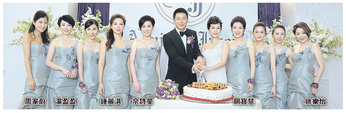 Annie possessed many friends in the entertainment circle, in which her bridesmaids included Charmaine Sheh (佘詩曼) 、Angela Tong (湯盈盈)、Janet Chow (周家蔚), Margaret Chung (鍾麗淇) and Sherming Yiu (姚樂怡). The groomsmen included Chin Ka Lok ( 錢嘉樂) and Timmy Hung (洪天明). Janet Chow and Timmy Hung enjoyed the lively wedding yesterday. The couple’s own wedding was only a few weeks away, as it was scheduled in the end of March.