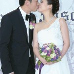 Hong Kong actress, Annie Man (文頌嫻) and businessman, Jason Lee (李梓慎), held their 28-table wedding banquet at the Four Seasons Hotel on March 2, 2012. Both 35 years old, the bride and groom had dated for 3 years. Appearing slightly more plump, the joyous bride announced that she was 3 months pregnant! The groom loved children, declaring that he hoped Annie will give him 5 kids!