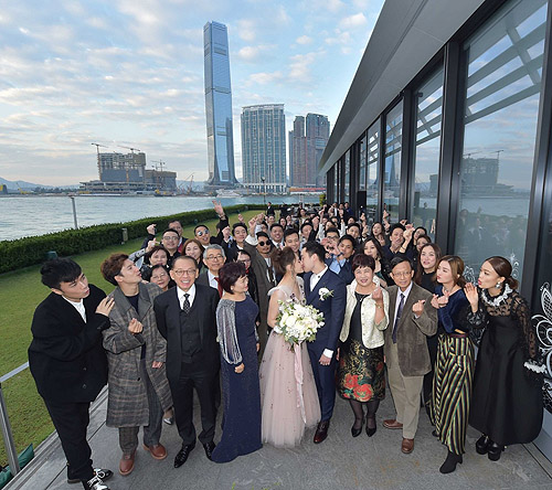 The 100 guests included the couple’s parents and family members, as well as Gillian’s boss EEG founder Albert Yeung (楊受成), and her friends from the company. Mani Fok (霍汶希), Joey Yung (容祖兒), Charlene Choi (蔡卓妍), Yumiko Cheng (鄭希怡), Leo Ku (古巨基), and Kenny Kwan (關智斌), who treated Gillian like a sister, said, “We don’t want you to get married!” But Gillian replied, “I want you guys to get married sooner!”
