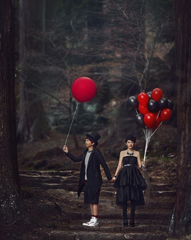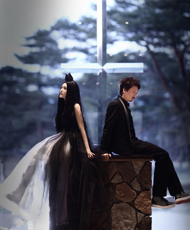are those their wedding photos?! they are too artistic for me! I found them to be dark, solemn and sad bordering on morbid! it does not conjure up romance, happiness or love.