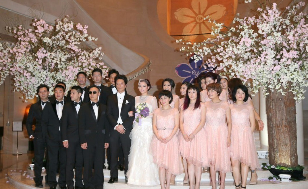 It was as if Grace and Eric’s wedding banquet was a red carpet event. Numerous famous Hong Kong stars attended in trendy dresses, becoming one of the hottest media attractions of the night. Among the stars that attended the banquet were Gigi Leung (梁詠琪), Karen Mok (莫文蔚), Jan Lamb (林海峰), Hacken Lee (李克勤), Deborah Lee (狄波拉),Patrick Tse (謝賢), Wyman Wong (黃偉文), Kary Ng (吳雨霏), pop band Mr., Annie Liu (劉心悠), Ella Koon (官恩娜), and Daniel Wu (吳彥祖).