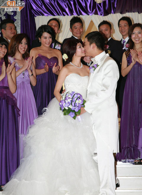 Miss Hong Kong 2001 Second Runner-Up, Heidi Chu Hoi Ting got married with her pilot boyfriend of five years, Dickens Lam on September 23rd. The couple held their wedding celebration at a hotel, with deep purple as their theme color. Over four hundred guests attended Heidi and Dickens’ wedding.