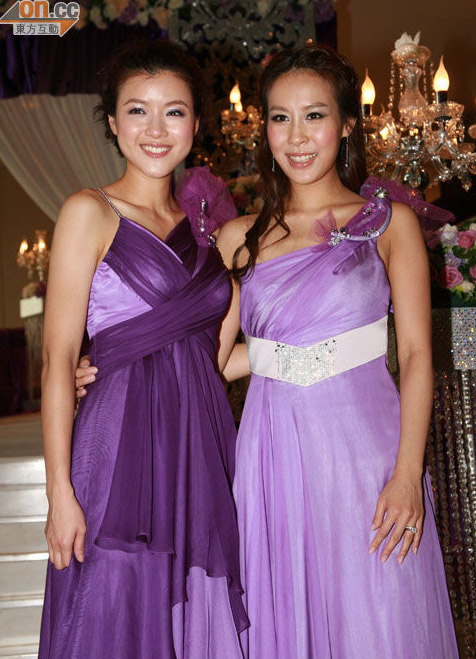 Heidi’s bridesmaids included Selena Li Sze Wan, Kayi Cheung Ka Yee, Aimee Chan Yan Mei, Mandy Cho Man Lei, Priscilla Chi, and other former Miss Hong Kong contestants. The bridesmaids wore elegant purple dresses in different designs. Heidi’s good friends Margie Tsang Wah Sin, Kenneth Ma Kwok Ming, Lai Lok Yi, Jack Wu Lok Yin, and On Tak Chuen also attended the wedding.