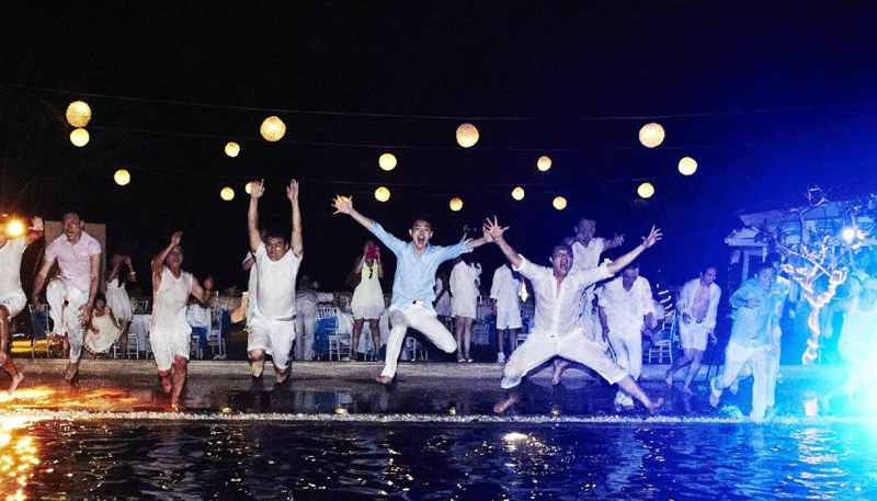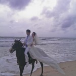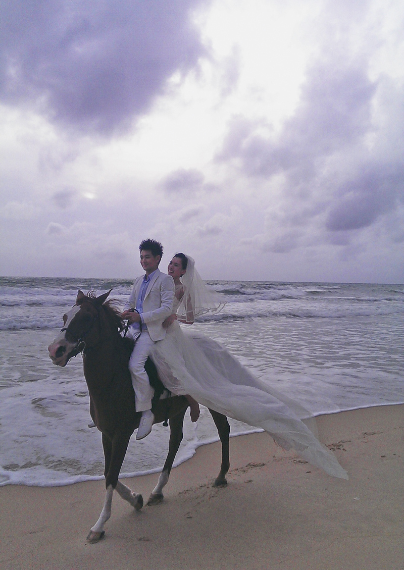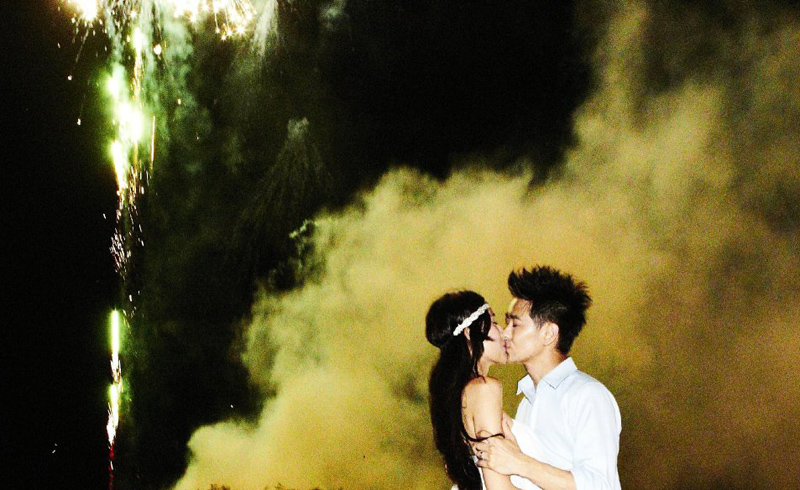 Despite this unfortunate turn of events, the wedding was still quite spectacular and eye-catching. Jimmy’s son Kimi served as the page boy, whereas the flower girls were Jimmy’s elder brother’s daughter and Malaysian singer Gary Cao’s (曹格) daughter. Characterized by a mix of Western and Thai wedding styles, the picture-perfect reception cost about 3 million TWD. Jimmy and Kelly rode on horseback on the beach, and they kissed under the fireworks as the memorable evening drew to a close.