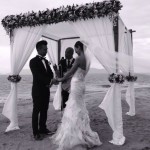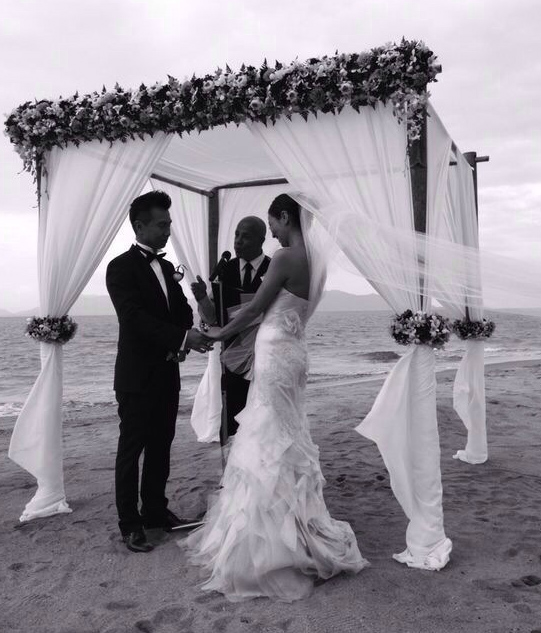 TVB actress, Joyce Tang (滕麗名), married her boyfriend of two years, Matthew Chu (朱建崑), on December 7. The couple’s destination wedding was held at the W Hotel in Ko Samui, Thailand. Surrounded by the beach and sea, Joyce and Matthew exchanged their vows in an intimate ceremony witnessed by 50 friends. Joyce wore two bridal dresses designed by Vera Wang, which were valued at $250,000 HKD.