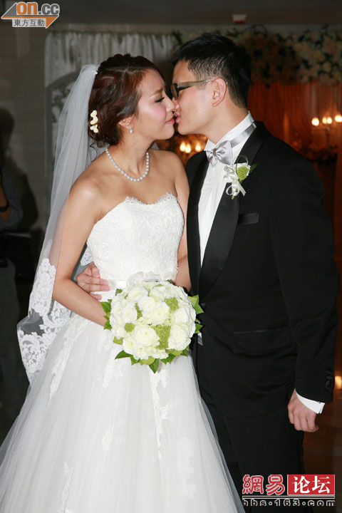 Miss Hong Kong 2003, Mandy Cho Man Lei, got married with finance executive, Jacky Cheung Ka Kit at the Four Seasons Hotel in Hong Kong on October 27th. The newlyweds kissed repeatedly to meet reporters’ requests. Mandy joked, “We kissed so much, my lips got twisted!” Regarding having a baby, Mandy indicated that she will let things run their natural course. However, she knew how to change diapers and would be able to take care of babies.