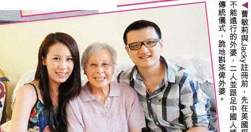 Due to her advanced age, Mandy’s grandmother who resides in New York , could not travel to the Hong Kong wedding banquet. Mandy and Jacky already poured tea for her grandmother in the traditional bridal tea ceremony.