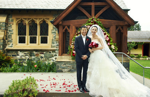 Mainland China’s most popular actress Yao Chen (姚晨), got married with famous photographer, Yu Cao (曹郁 ) in New Zealand on November 17. Yao Chen wore an elegant Vera Wang bridal gown with a long veil. Yao Chen had a small and intimate church ceremony, followed by a beautiful reception set amidst snow-capped mountains.
