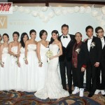 Yoyo and Vincent were not subject to unruly wedding games at their banquet. Vincent announced that he had a surprise performance and sang Loving You the Most <最愛的你>, which moved Yoyo to tears. The wedding banquet atmosphere was very warm and moving. Guests, Myolie Wu (胡杏兒), Johnson Li (李思捷), and Edwin Siu (蕭正楠) sang onstage to congratulate the newlyweds. Yoyo and Vincent’s wedding almost turned into a concert and was a feast for the guests.