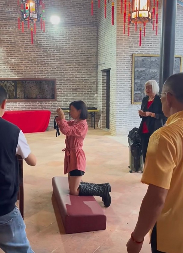 Paying her dues, Charmaine went back to her ancestral home where she was surrounded by happy and excited villagers. Many children gathered around and tried to stop her from leaving. Because of the sheer number of people during her visit, Charmaine held onto her mother the entire time, worried that she would get injured in the crowd. Even when they were getting ready to offer incense to their ancestors, Charmaine held onto her mother while she knelt down.