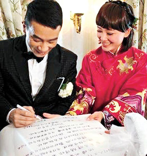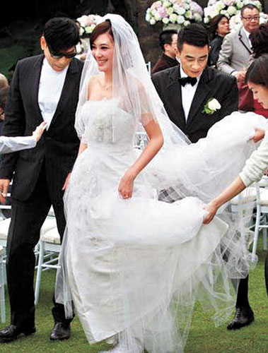 Although Jordan Chan Siu Chun and Cherie Ying Choi Yee have been married for nine months since their Valentine’s Day wedding in Las Vegas , the couple held their Hong Kong wedding celebration in Disneyland on November 13th. Cherie and Jordan kissed nine times to signify the longevity of their marriage union. An evening banquet of fifty-two tables was held with the attendance of numerous celebrities.