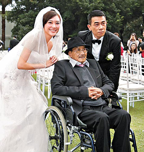 At the evening banquet, Jordan and Cherie made a toast to all the wedding guests. Jordan said to Eric Tsang Chi Wai, “Eric, you are like half my father, why don’t you come onstage and say a few words?” Eric walked up to the stage and said, “What good am I? Why don’t you ask your real parents to say a few words?” At this point, Jordan said to his father, who was terminally ill, “Father, do not give up! If you were to give up, the whole family will give up!” Sitting in a wheelchair, Jordan ’s father said, “I want grandchildren!” Jordan could not hold back his tears and said, “Yes, you have to wait for the birth of your grandchildren!” Eric also started crying at this moment as well.