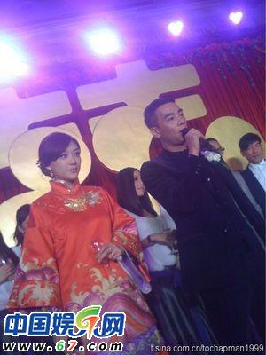 Jordan’s groomsmen went onstage to offer their congratulations. Jordan and Andrew Lau sang “友情岁月”together. After Cherie and Jordan toasted all their guests, Cherie got a bit drunk and did not let Louis Koo leave the wedding. “It’s still early! You can not leave yet. Let’s drink a little more!” Louis drank another round before leaving the wedding site.