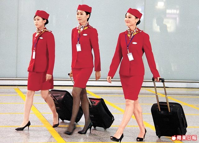 If you look at Kate Tsui’s shoes, she is definitely not a flight attendant. All flight attendants are required to wear closed toe shoes whether heels or flats. She is a “no-go”!