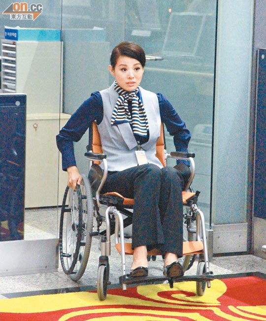 Chilam Cheung and Myolie Wu had apparently sacrificed their sleeping time by waking up at the crack of dawn specially to film the trailer for “Triumph In The Skies 2”. Myolie, who was acting as a handicapped personnel, was in high spirits and happily “danced” away in her wheelchair once she was on it, clearly displaying that she had no problems using the wheelchair in front and behind the scenes.