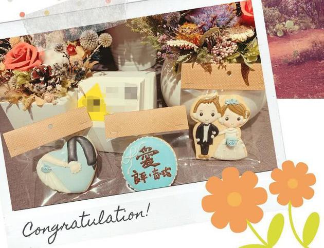 The snacks for the wedding banquet have also been revealed to be icing cookies with cute designs, including a heart-shaped cookie showing a bride and groom joining hands, and a cookie with the word “love” and the couple’s names written on it.