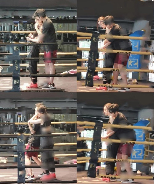 In the photos, Darren and the woman were training in a Muay Thai gym. The two were inside a boxing ring, and Darren was hugging the woman from behind.