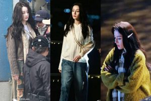 Photos of Dilraba’s five costumes were leaked and netizens were dismayed at the baggy and unkempt clothing choices. The first set of clothing is a brown suit jacket paired with a mustard linen long skirt and avocado green bag shoes. The style is quite artistic, but it makes her character seem too soft. The second set is a brown plaid jacket paired with wide, ripped denim jeans which is paired with a bohemian white silk scarf. The overall color scheme is messy and a bit bleak. The third set is a wide white drawstring hoodie paired with wide denim jeans. As both the upper and lower garments are loose, Dilraba’s fit physique is covered and she seems bloated. The fourth set is a large plaid shirt worn with a green knitted cardigan. The fifth set is a black and white checkered coat with jeans. Her hair appears neat, but netizens criticized Dilraba’s outfit looks like a tablecloth.